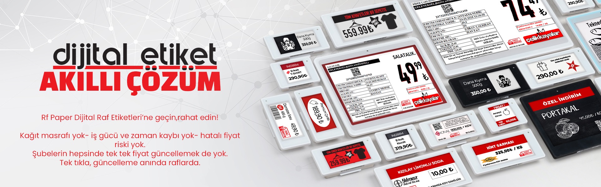 DevamıDijital etikete geçen kazanıyor! RF-Paper, dijital etiket çözümleriyle Market, Eczane, Restoran, Hastane, Oteller ve Özel Projeler gibi farklı sektörlerde dijital dönüşüme öncülük ediyor.- Marketlerd